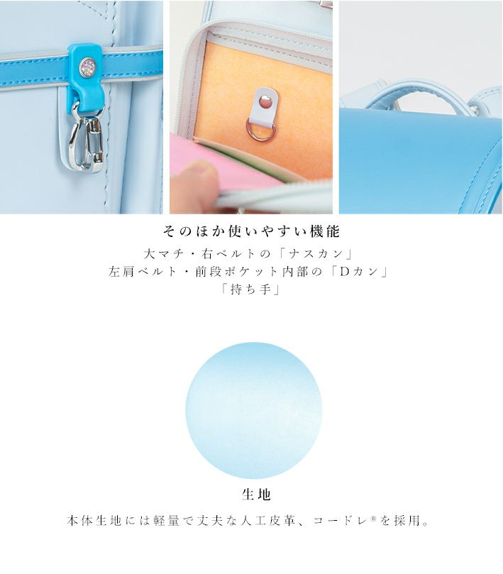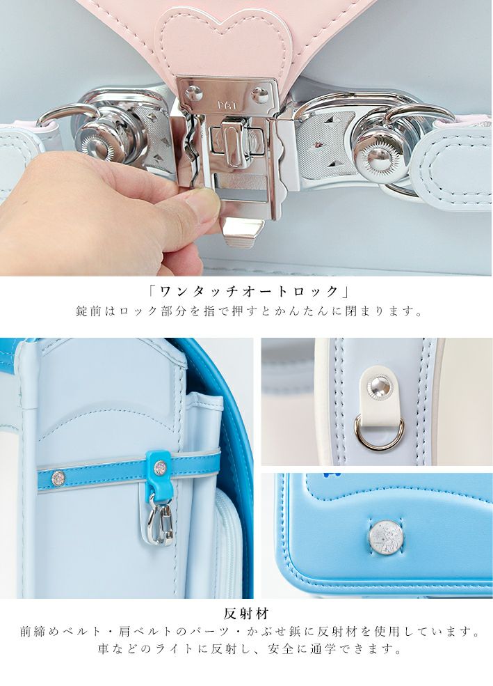 付属品:ネームカード、連絡袋、取り替え鋲(4個、内2個はランドセルに装着された状態でお送りいたします)