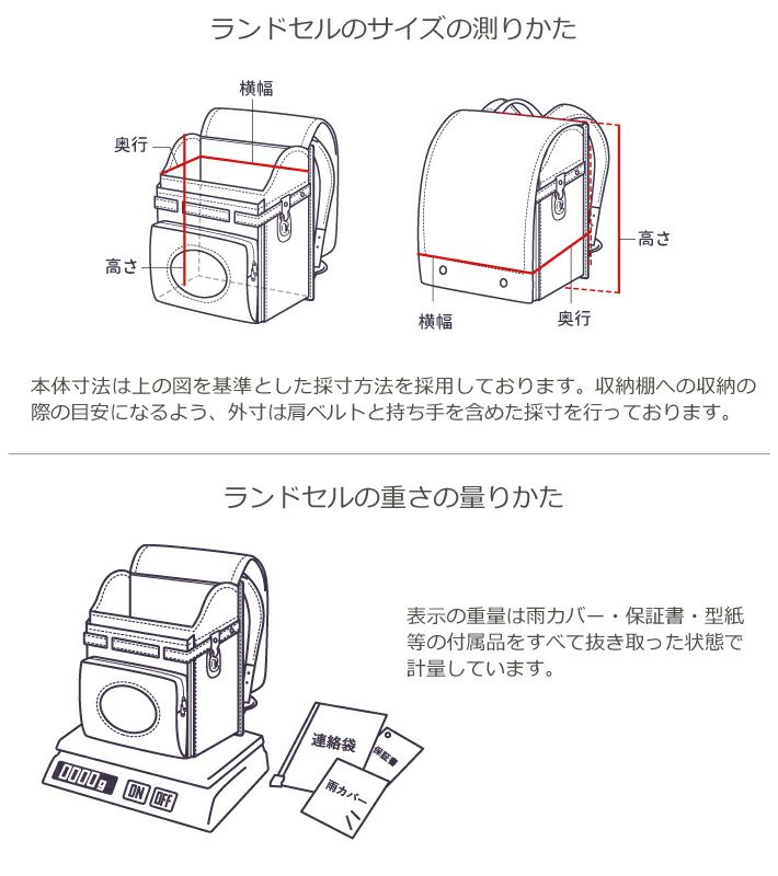 ・付属品:時間割表、ネームカード、雨カバー、連絡袋