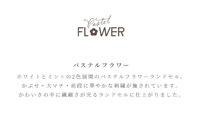 パステルフラワー 2026 ランドセル 2カラー sb-wm-g ホワイト 在庫(1〜4営業日で出荷) ◆ラッピング(無料) 選択してください 希望する 希望しない ◆のし(無料) 選択してください 希望する 希望しない ◆早期入荷の際は即発送を 選択してください 希望する 希望しない 【デビットカード利用不可 選択してください 了承する】 在庫状態 : 売り切れ ¥51,819 ¥51,819(税別) ( 税込¥57,000 ) 只今お取扱い出来ません ミントグリーン 在庫(1〜4営業日で出荷) ◆ラッピング(無料) 選択してください 希望する 希望しない ◆のし(無料) 選択してください 希望する 希望しない ◆早期入荷の際は即発送を 選択してください 希望する 希望しない 【デビットカード利用不可 選択してください 了承する】 在庫状態 : 在庫有り ¥51,819 ¥51,819(税別) ( 税込¥57,000 ) 数量個 パステルフラワー 2026 ランドセル 2カラー sb-wm-g (sb-wm-g)