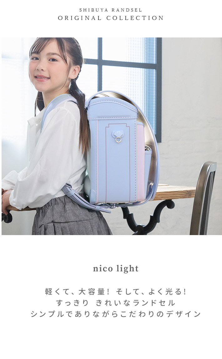 ランドセル ニコライト 2027 ふわりぃ シブヤ オリジナル 限定 シンプル デザイン 女の子 男の子 ユニセックス おしゃれ かっこいい かわいい A4フラット 軽量 軽い! 日本製 6年間保証 sb-nico-lig