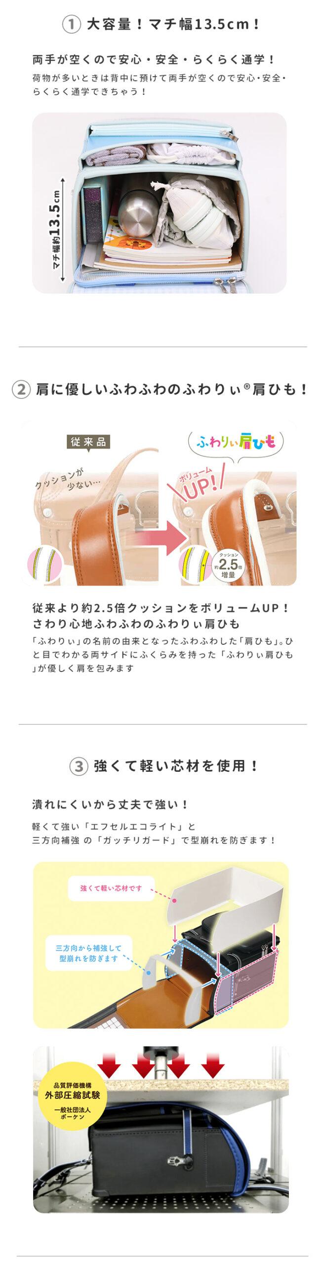 その他搭載機能:A4フラットファイル&タブレットPC対応サイズ/肩ひも防犯フック/スーパーブレスター(肩ひもと背中クッション)