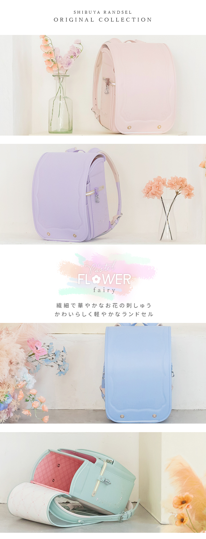 ランドセル パステルフラワー フェアリー 2027 ふわりぃ シブヤ オリジナル 限定 シンプル デザイン 女の子 かわいい 刺繍 お花 A4フラット 日本製 6年間保証 sb-nico-lig