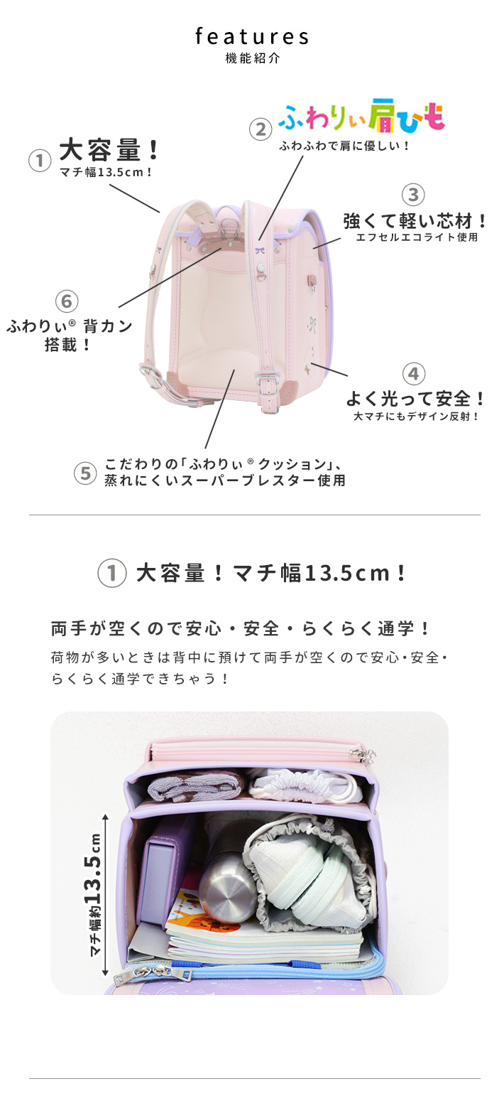 ランドセル スターリースカイ 2027 ふわりぃ シブヤ オリジナル 限定 レインボーリフレクト 星 リボン ネコ 刺しゅう デザイン キラキラ 女の子 かわいい A4フラット 軽量 軽い! 日本製 6年間保証 sb-ss