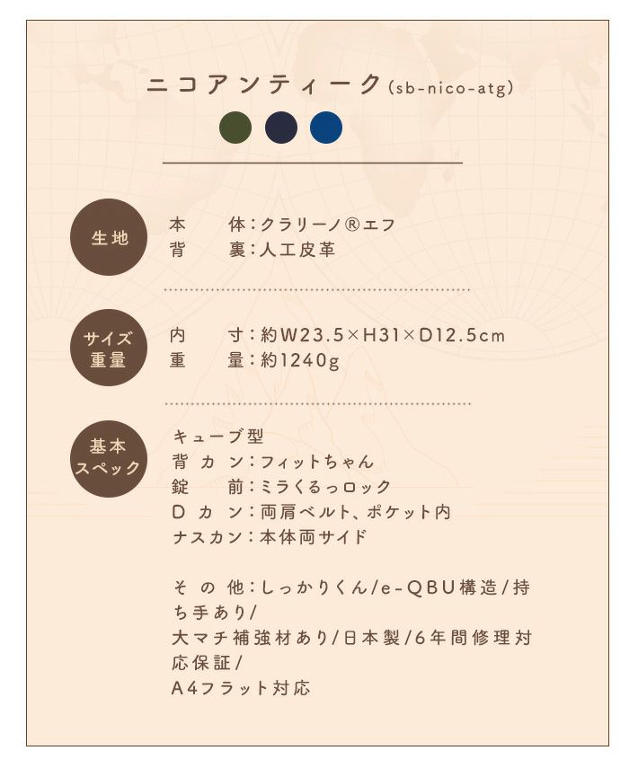 ニコアンティーク 2026 フィットちゃん<R> ランドセル 身幅調整が出来るランドセル sb-nico-atg