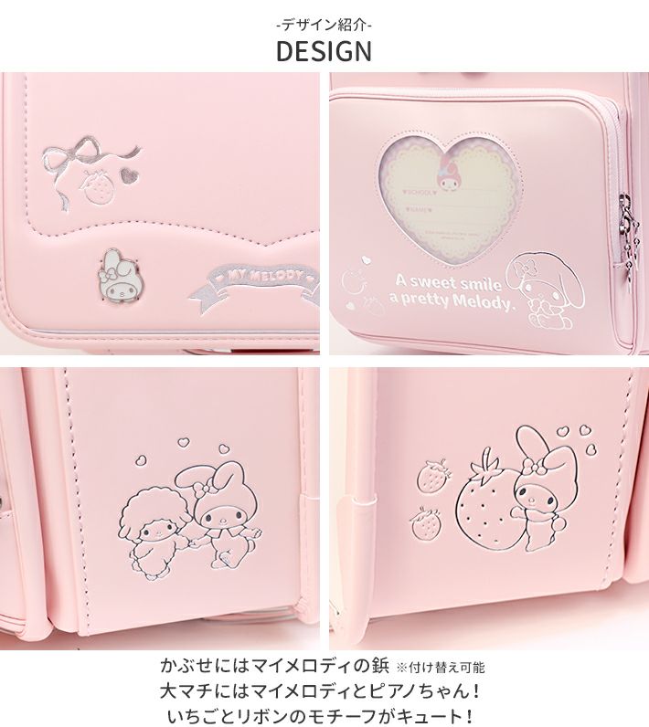 かぶせ裏や大マチ(ランドセルの側面)にはマイメロディとピアノちゃん